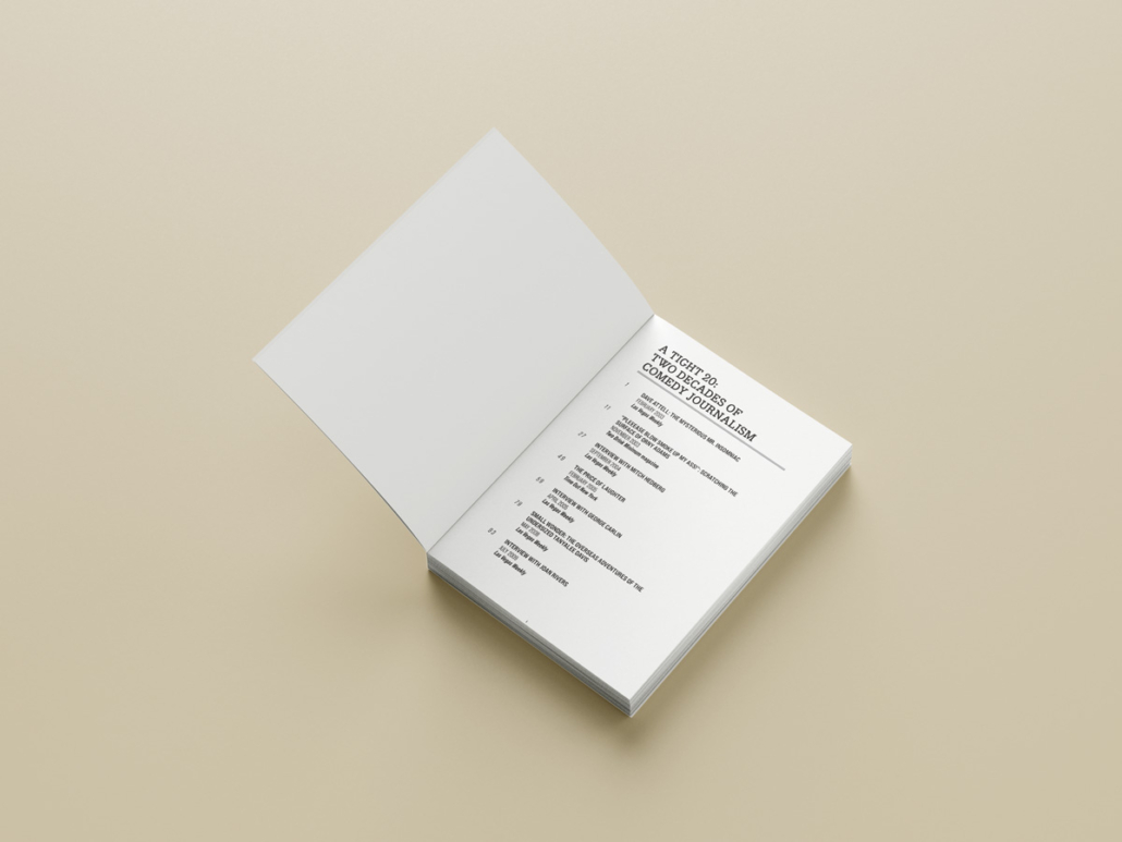 Jacket design and interior layouts for Julie Seabaugh’s alt-comedy journalism retrospective, A Tight 20: Two Decades of Comedy Journalism.